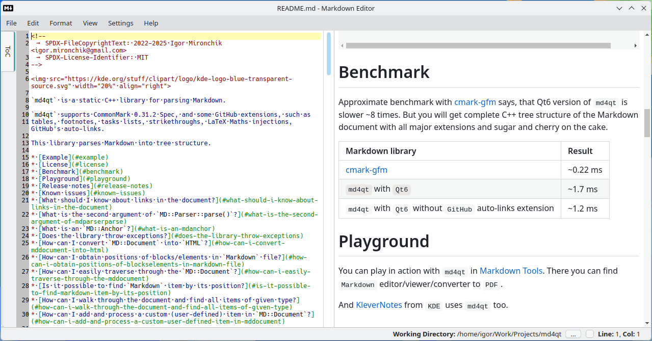 You can setup and opt in additional style plugins for Markdown processing, like subscript, superscript, marking of text. This feature implemented both in editor and converter to PDF.